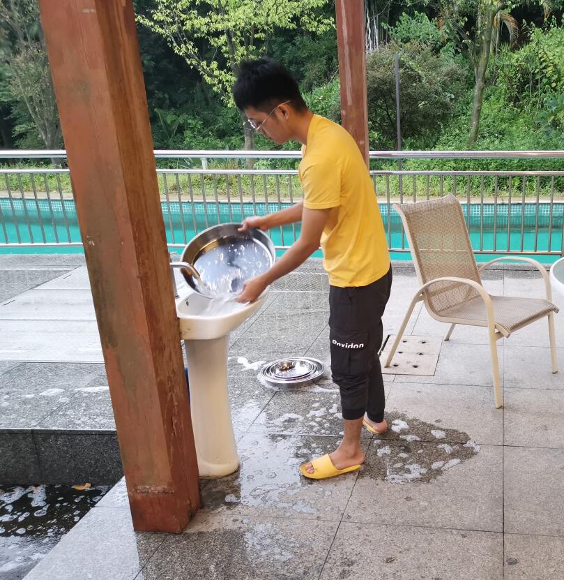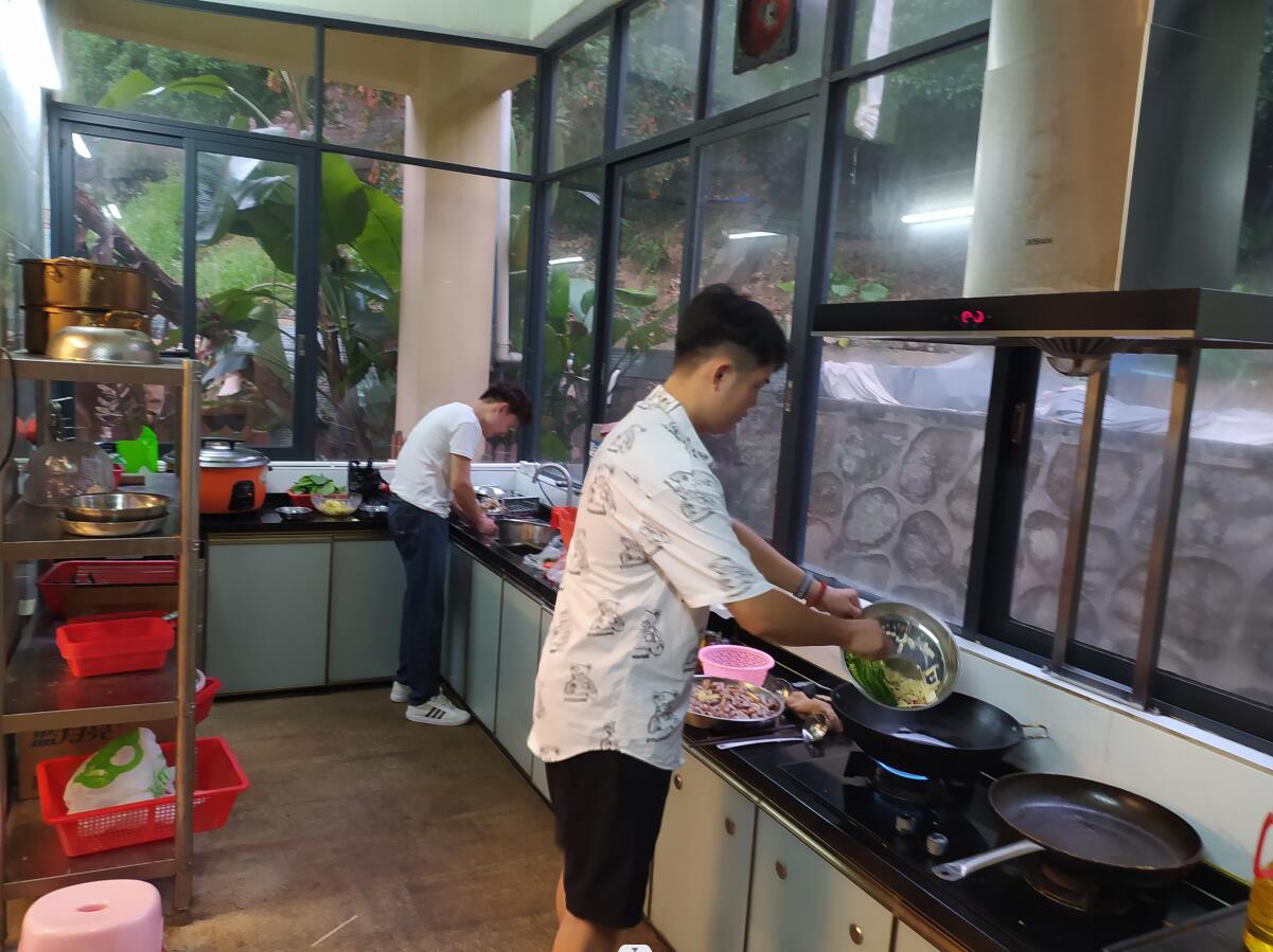 自由活动完毕,集体参与制作晚餐。