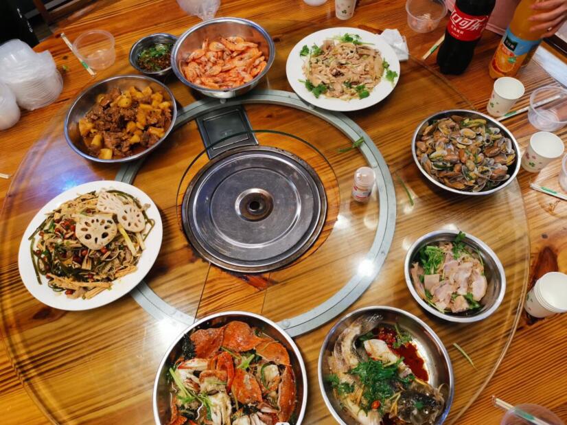 丰富美味饭菜,转眼呈现在眼前,为我们团队竖起大大“拇指”。